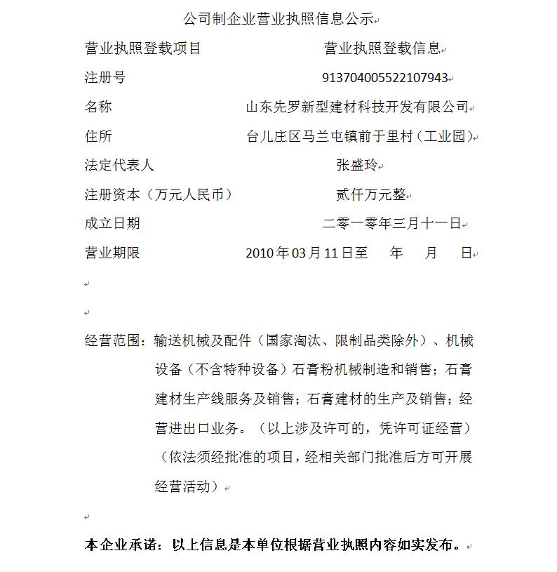 公司制企業(yè)營業(yè)執(zhí)照信息公示