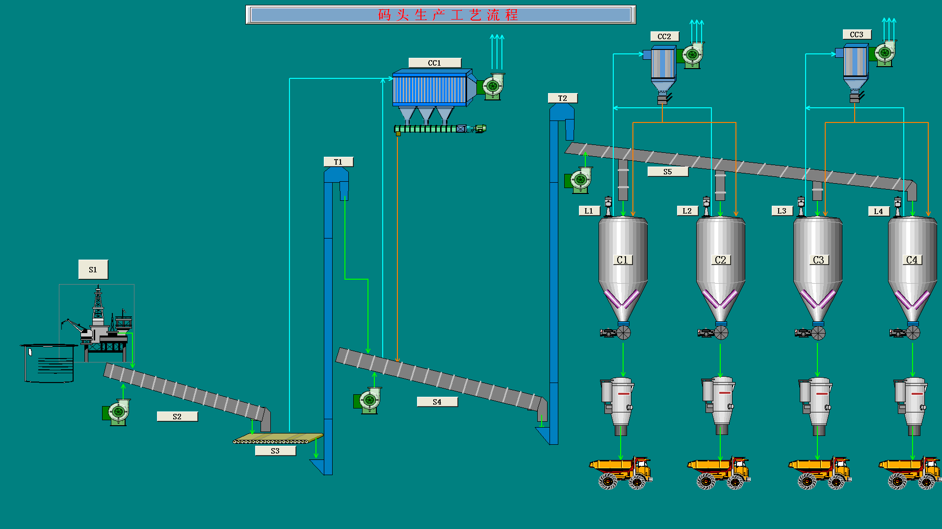 4、整條中轉線采用負壓運行,全環(huán)保排放<30mg/m3,滿足港口對整個環(huán)境的需求。